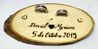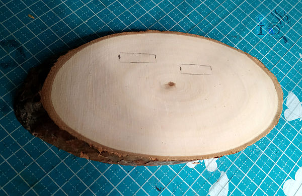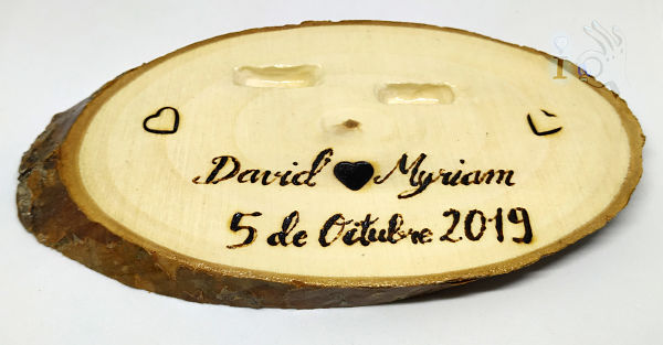 Comenzamos utilizando una rodaja de madera, o reciclándola, que por algo el reto va de reciclaje... y e ella marcamos con un lápiz el tamaño de nuestras alianzas.