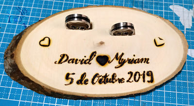 Ahora ya tenemos el trabajo duro hecho. Limpiamos bien toda la viruta (que ya os aviso que es bastante, se pone todo perdido), y pasamos a usar el pirograbador para grabar el motivo que queramos en la superficie.