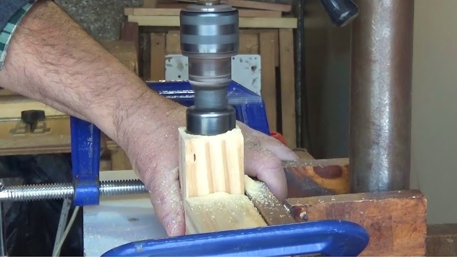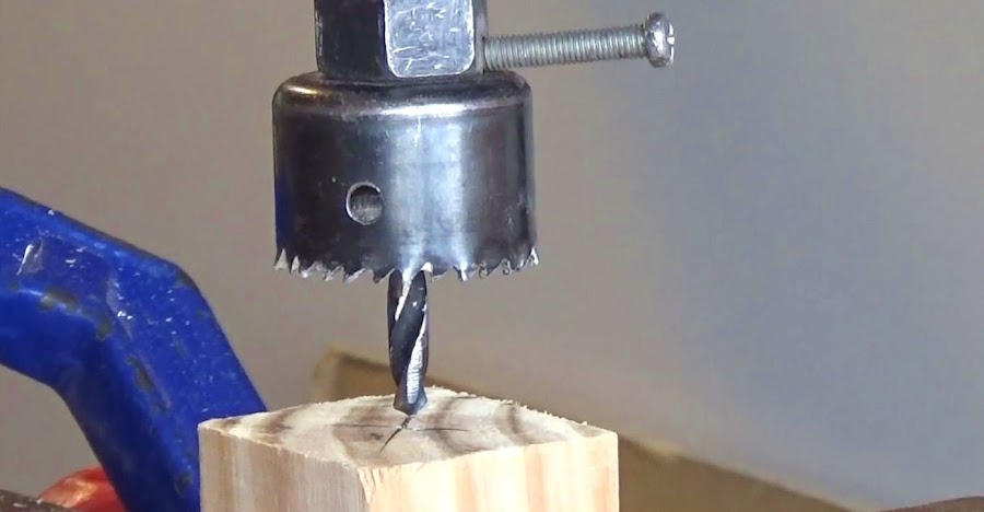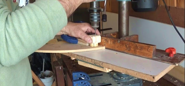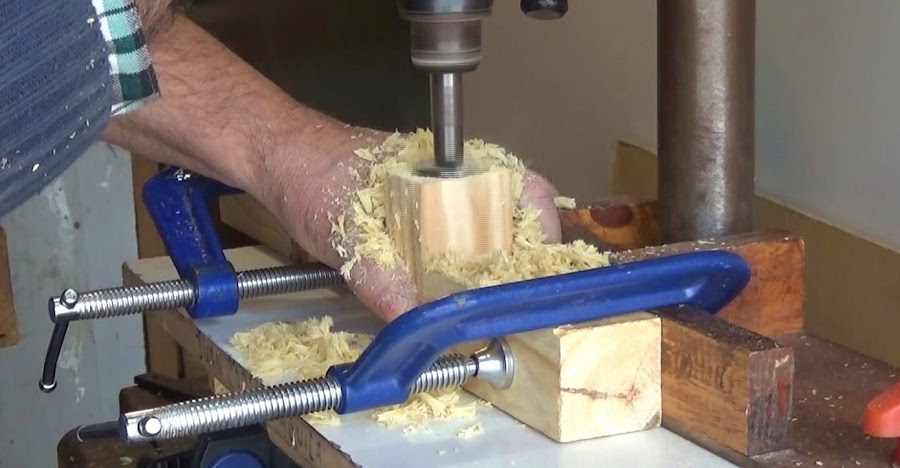 Luego con una mecha tipo copa perforamos en otra pieza de madera del mismo espesor, para fabricar la tapa del salero.
