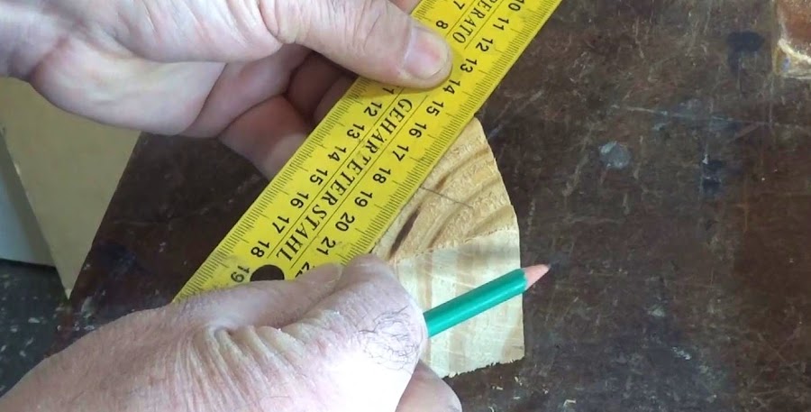 Luego trazamos dos diagonales, para buscar el centro. Allí lo unimos al centro de la broca tipo forstner de 35 mm de diámetro.