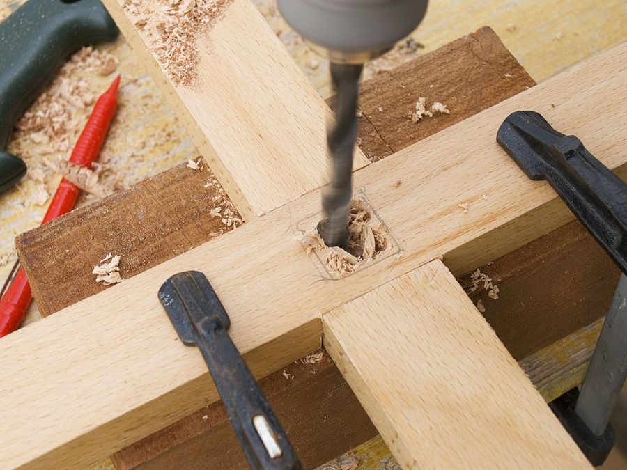 Hacemos el rebaje para el soporte vertical primero con la broca, después con el formón, para terminar con la lima.