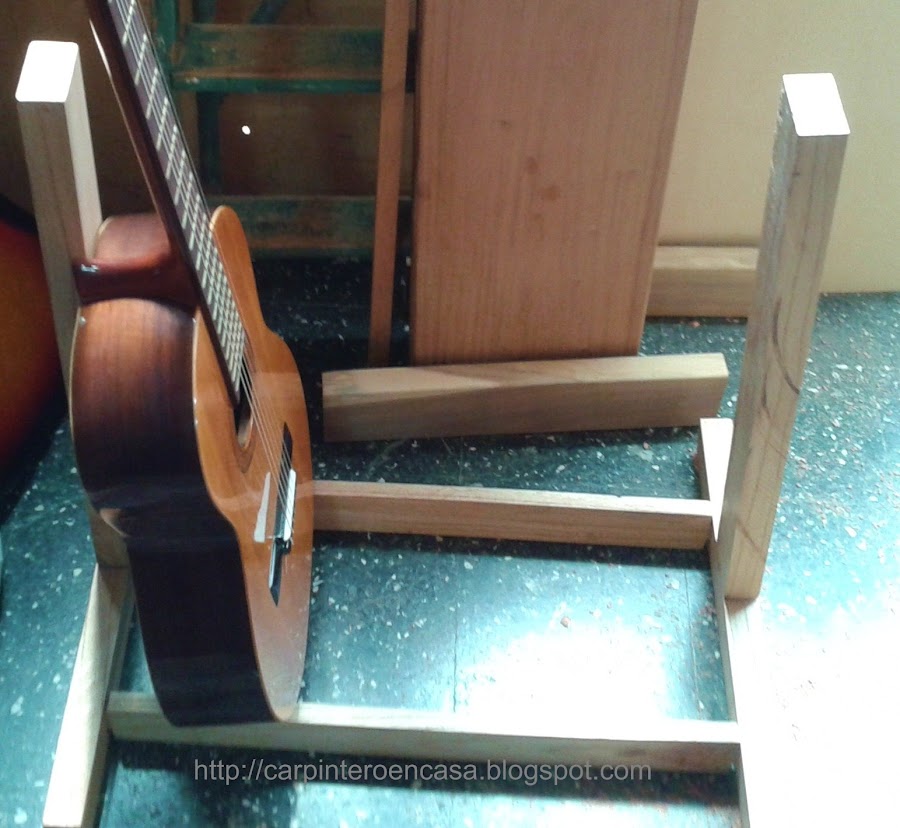 Se arman primero las "T", y luego se unen éstas con los listones de la base, previamente hechas sus cajas y espigas, donde apoyarán las cajas de las guitarras.