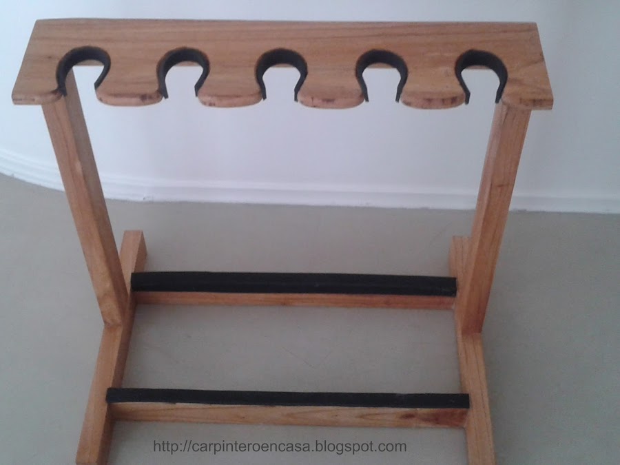 Así nos quedará terminado el soporte. En este caso para 5 guitarras. Ustedes pueden hacerlo para más o menos cantidad.