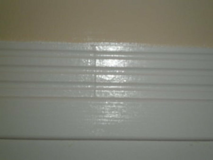Por último, quedaban los remates finales. Para cubrir los huecos entre las molduras y la pared, así como las juntas de las uniones entre molduras, usó aguaplás, por lo que después tuvo que corregir de nuevo con pintura. Y aquí tenéis el resultado final