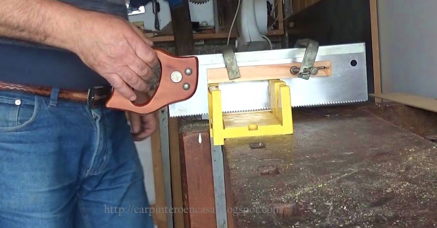 Las tiras tienen 3 mm de espesor. O sea que solo llegará a cortar el serrucho 1,5 mm, ya que no llegará la sierra hasta el piso de la caja de ingletes.
