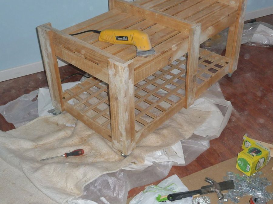 3 Ya tenía una estructura sólida y resistente y llegó el momento de rellenar con masilla los desperfectos y agujeros que habían dejado los clavos anteriores, y lijar.