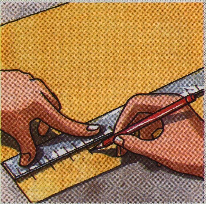 Marque los pliegues con las tijeras y la regla;