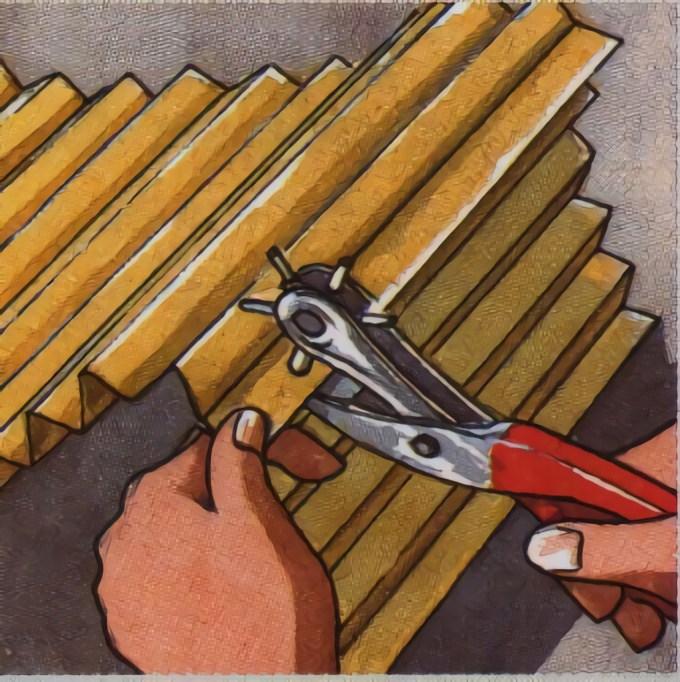 Todos los pliegues deben estar agujereados a excepción del primero y del último, que son los que se unirán. Utilice un pegamento para papeles y presiónelos un rato, hasta que el adhesivo se endurezca. Una vez seco, haga los dos orificios y el pequeño corte por la parte interna del agujero inferior.