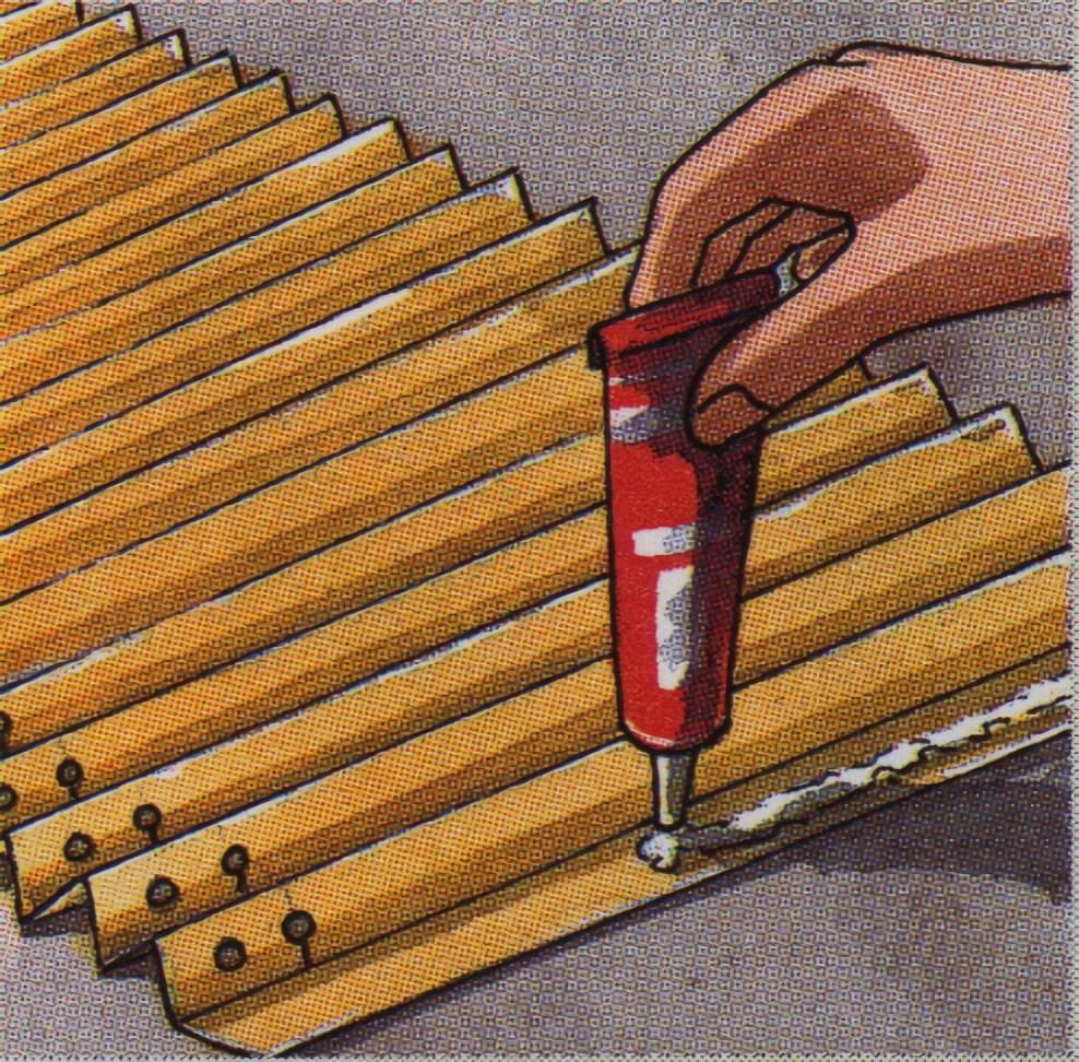 Sirviéndose de los cortes que ha efectuado, encaje el armazón metálico en la fila inferior de agujeros. Acabe de fruncir la pantalla, estirando un poco el cordón, mientras abre la parte inferior de la pantalla hasta obtener la circunferencia deseada. Anude el cordón y córtelo para que no se vea.
