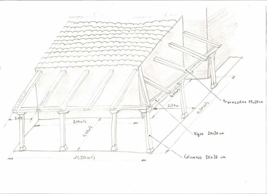 El boceto de nuestro amigo Brekin plasma su proyecto de pérgola en forma de L, por dos lados de la casa. Un diseño realmente atractivo, que hará ganar muchos puntos a la vivienda. ¡Estamos deseando conocer el montaje terminado!