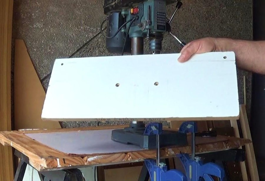 Colocaremos una placa de madera sobre la mesa de metal, ajustándola con un par de tornillos pasantes con tuercas. Esto nos dará más comodidad y mayor apoyo para trabajar.