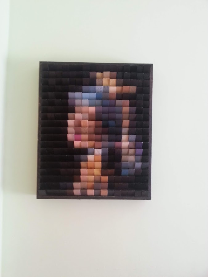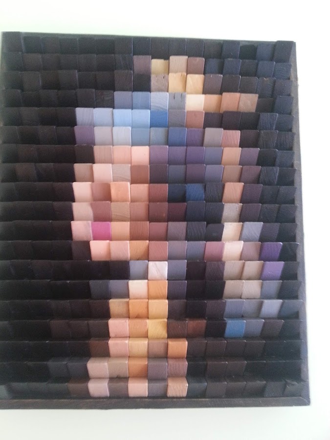 Como ya os cuento el misterio es ir pintando cada pieza de un color, logrando que al poner cada pieza pintada en su lugar y al mirar con cierta perspectiva podamos apreciar el dibujo pixelado de uno de los retratos mas famosos pintados.