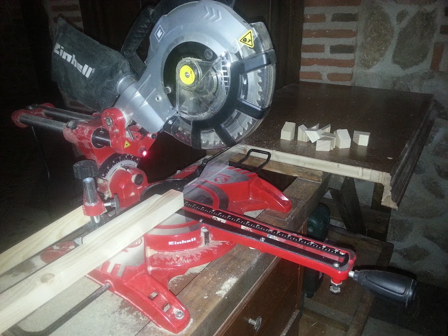 Con mi nueva ingletadora eléctrica, empecé a cortar piezas.