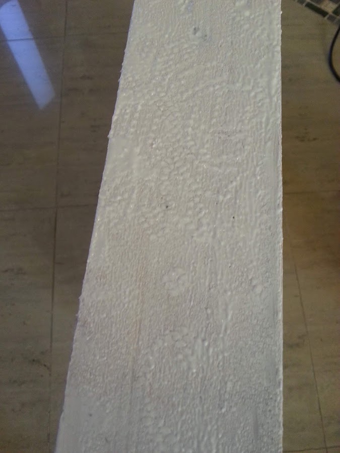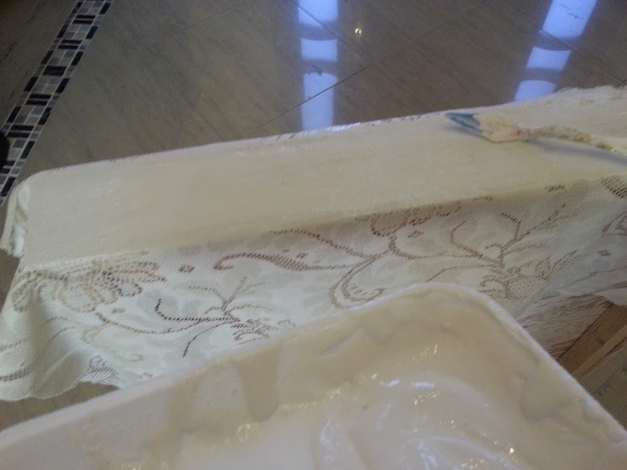 Tengo que contaros que, no logré el efecto deseado en el primer lateral, ya que al levantar la tela se traía tras de ella la masa, tal vez el truco era deja que endureciera un poco, como así pude comprobar en los siguientes laterales que emplastecí.