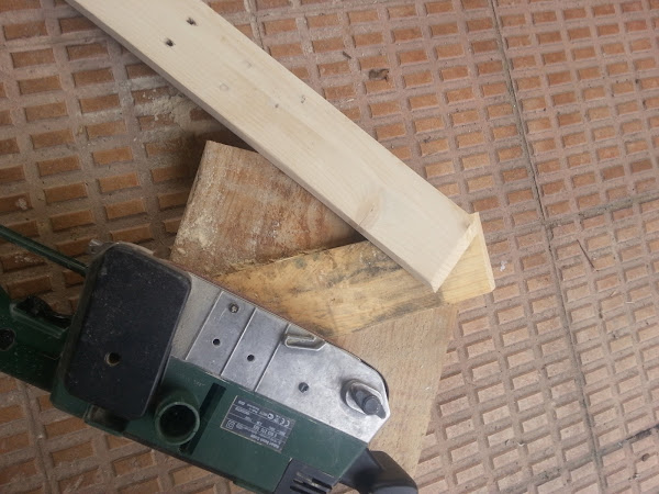 Con la lijadora de banda, las tablas de palet las lijo, siempre siguiendo la dirección de la veta de la madera.