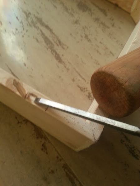 En esta foto os cuento como con el escoplo golpeando con un martillo de madera hago un cajeado para insertar las bisagras.