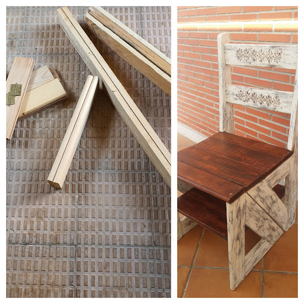 Así es como queda la silla escalera una ver terminada de construir. Ahora pasamos a dar el acabado.