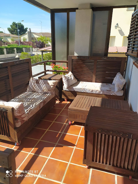 Tengo que decir que la tela a mi personalmente me habría gustado mas un blanco roto en lugar de ese estampado y los muebles me gustaban más como yo los coloque de primeras jajajaj. Pero como para gustos los colores y si así les gusta mas a sus dueños pues yo encantada....a ver cuando pasa esta dichosa pandemia y podemos disfrutar de un picoteo en esa preciosa terraza que quedó.