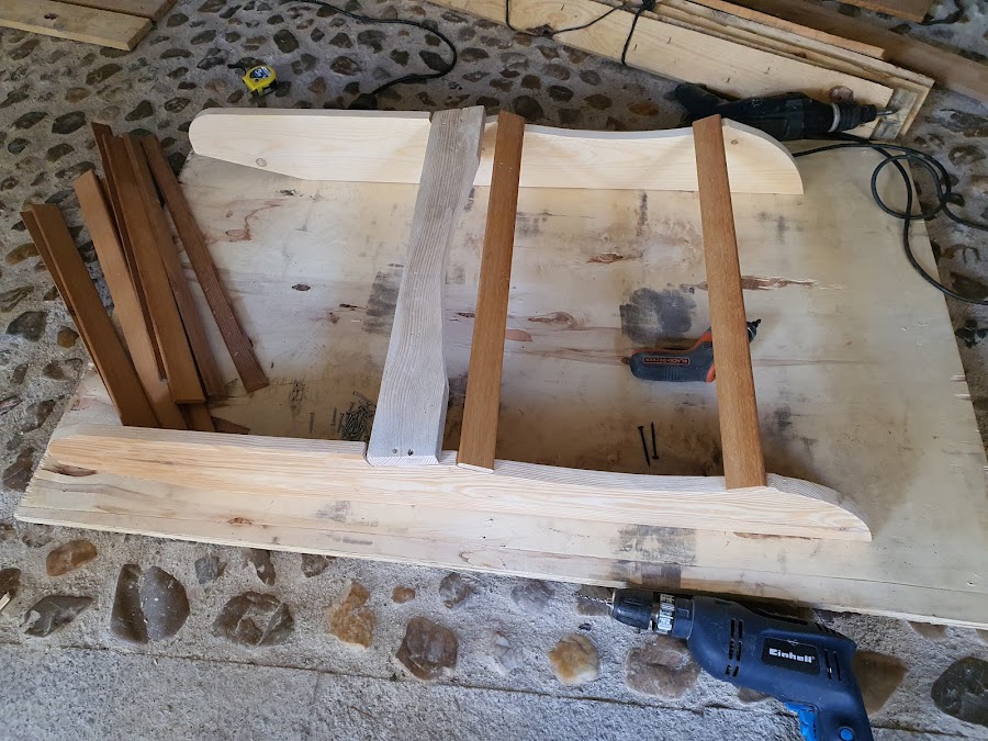 La verdad que todas las maderas son recicladas, de palet grandes y de maderas de restos de obras que me dan y tengo organizadas en el taller, para cuando llega el momento de empezar algún proyecto.