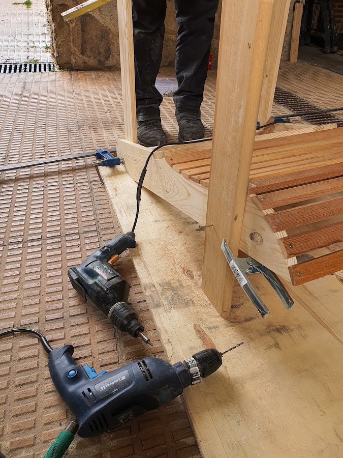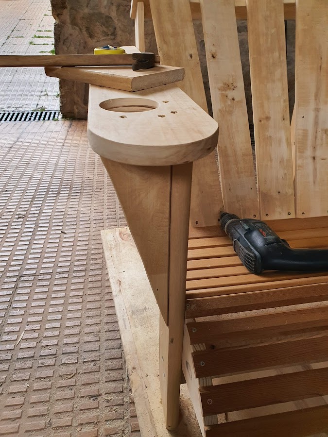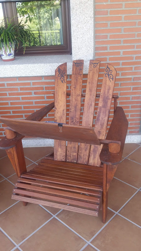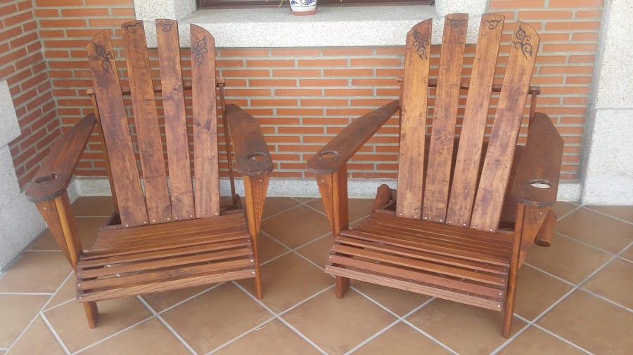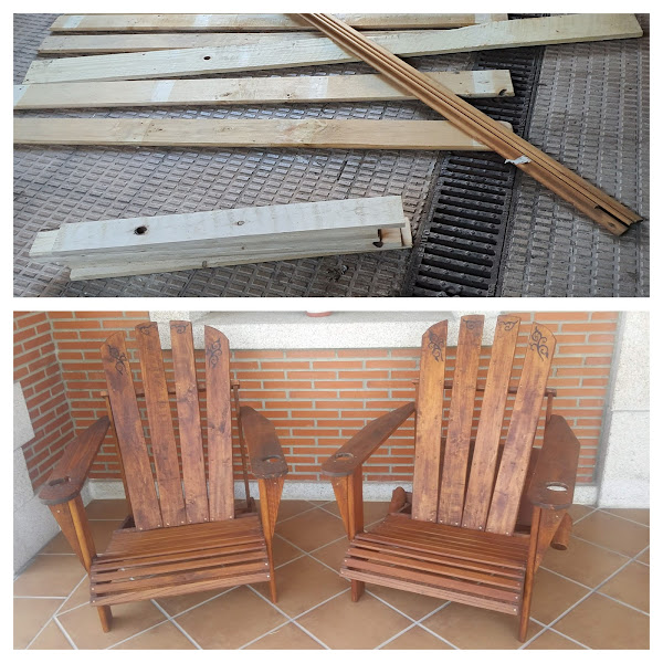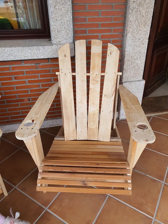 Este trabajo le hice junto con mi marido, durante esta dura cuarentena. Esos quince días en los que solo se podía salir a por la alimentación, en la que mi marido tampoco pudo asistir a su trabajo por no ser de primera necesidad, tuvo nuestras mentes ocupadas y distraídas. En todas las ocasiones, mi marido no quiere saber nada de mis trabajos, pero en esta ocasión debido a las circunstancias, si le pareció motivador hacer esta pareja de sillas adirondack , junto conmigo y así cada uno podría disfrutar su propia silla.