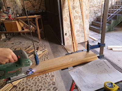Como se puede ver las piezas las corto con la sierra de calar, y para igualar las pillo en el banco de trabajo y las doy con la lijadora de banda.