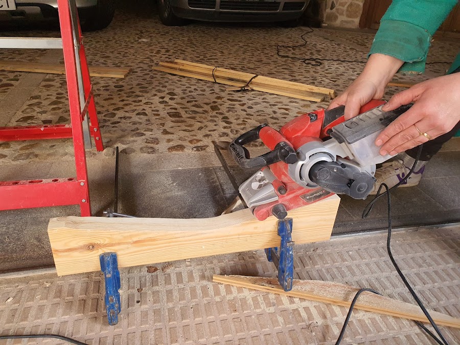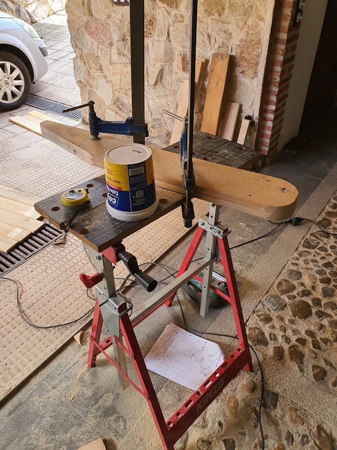 Para marcar la curva del la madera, uso el redondo del bote de cola.