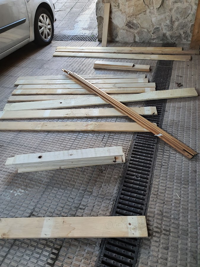 Estas que se ven en la foto son todas las maderas con las que contaba, y la verdad cuando compras las maderas a medida este proyecto es muy sencillo, pero el misterio radica en acoplar aprovechando cada trozo de madera.
