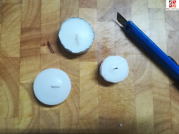 He utilizado velas led pero también las normales y como son más anchas que la boca del tubo, las he recortado un poco con el cúter