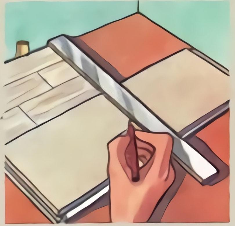 (4) Corte la tabla por la marca y colóquela en la esquina.