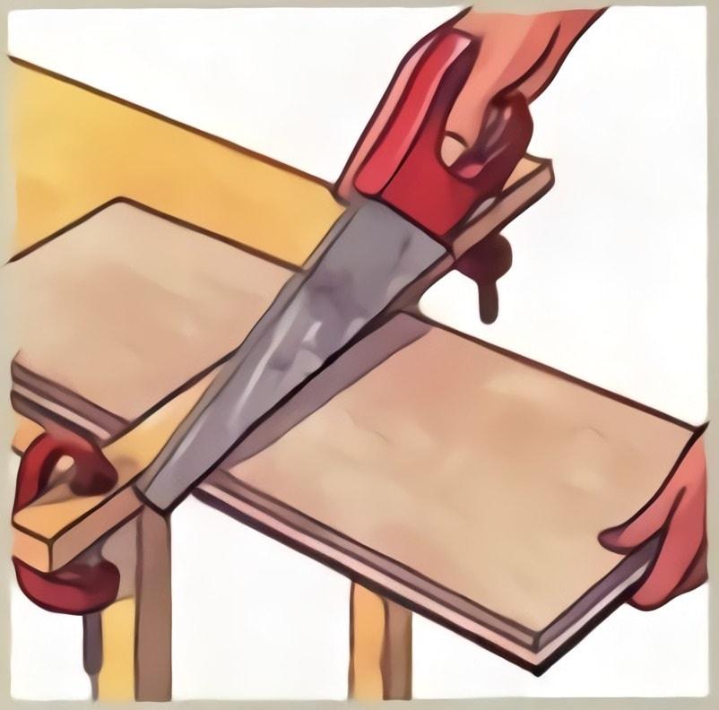 Que se necesita: parquet, cuñas de madera de 100 mm, sierra pequeña, cola de carpintero, pincel, regla, lápiz, trapo de algodón, taco de madera blanda y martillo.