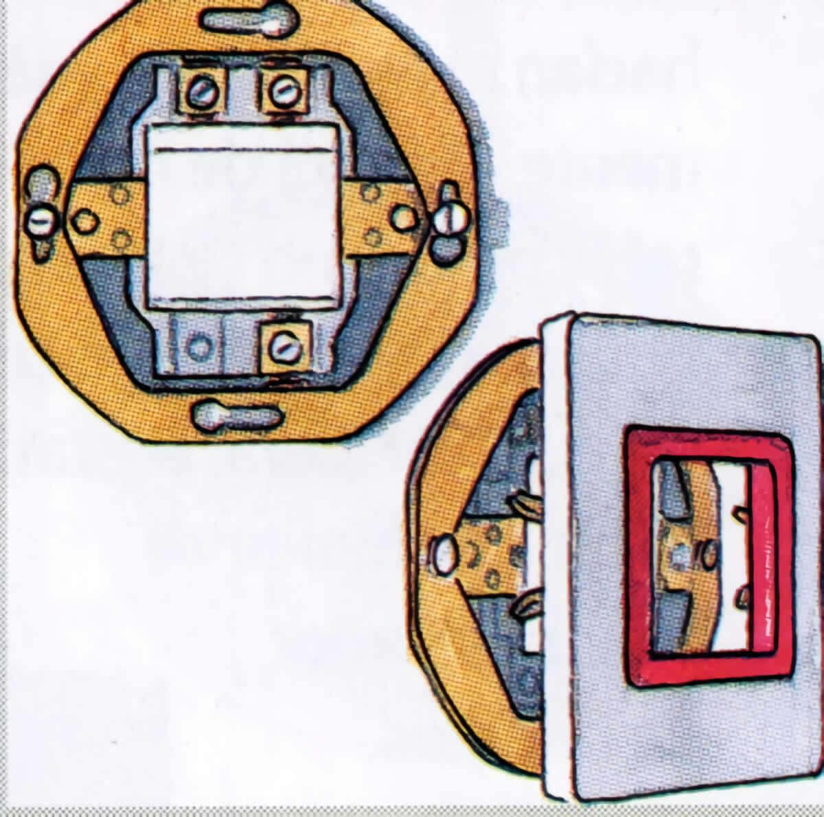 Introduzca el mecanismo en la caja y asegúrelo con las piezas de fijación y con los tornillos.Apriételos bien para que no se resienta con el uso. Ponga la tapa y, si hay marco, móntelo también. Finalmente, verifique el funcionamiento, con un comprobador de tensión –si retrata de una base- o accionándolo si es un interruptor.