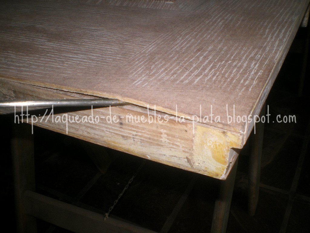 Como se ve en la foto la chapa de madera es retirada con una pistola de calor .