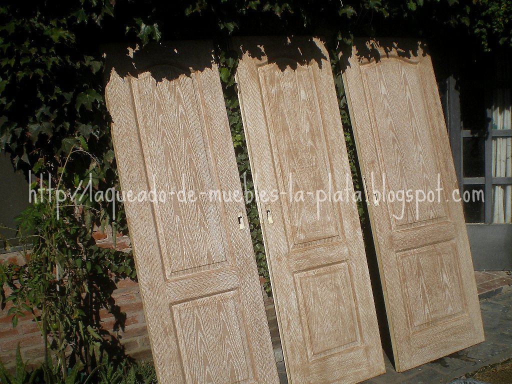 Estas puertas estaban enchapadas en los costados pero al ser laqueadas esto no es necesario . La chapa de madera fue retirada para fácilmente restaurar las puertas .
