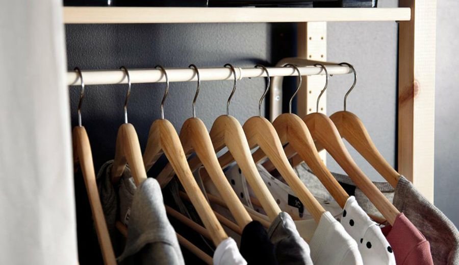 Para esta opción podemos seguir las ideas anteriores, es decir, fabricar una estructura de madera a partir de tablones, y colgar una o dos barras a diferentes alturas. Sin embargo, si tenéis una pared totalmente disponible, podéis extender la barra de pared a pared, de manera que aprovecharemos mucho mejor el espacio.¿Y qué hacemos con los complementos?