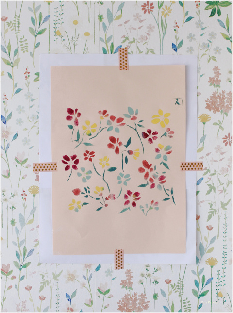 La forma de pintar es muy curiosa y requiere mucha paciencia porque es muy lento. Hay que mojar solamente las puntas de las fibras, descargar el exceso de pintura sobre un trapo o un papel de cocina y pintar dando golpecitos sobre el hueco de la plantilla que queda libre. La pintura no puede extenderse como haríamos para pintar normalmente porque se metería por debajo y emborronaría el dibujo: