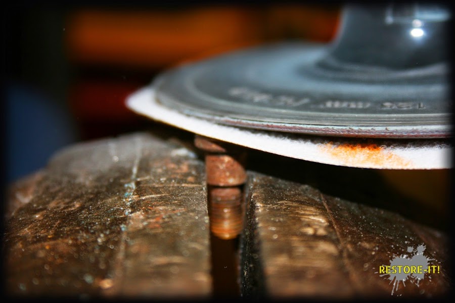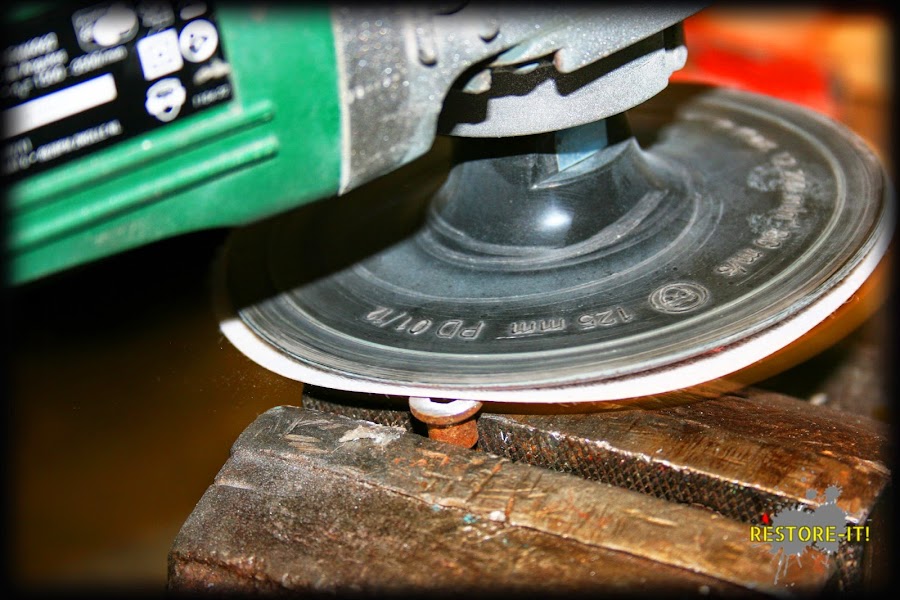 Y comienza el proceso! Lo primero que debemos hacer es ponernos una mascarilla para protegernos del polvo del lijado. A continuación, ya podemos empezar a eliminar la primera capa de óxido, para ello utilizaremos el disco de P120: