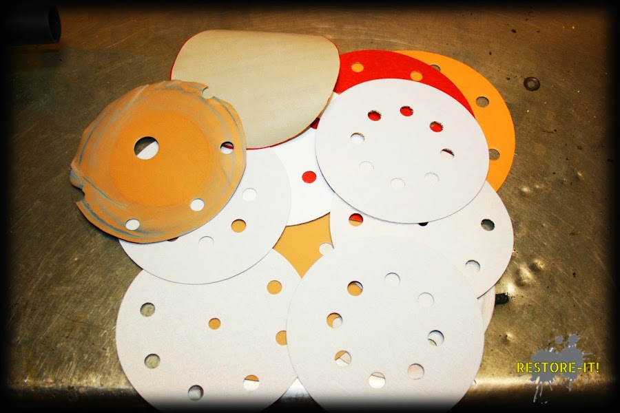 Ahora iremos devastando la superficie para "disimular" esas irregularidades. Seguimos con el disco de P220 e iremos subiendo el grano:
