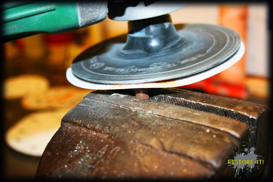 Se podría lijar y pulir a mano pero, ésto nos costaría muchas horas y provocaría irregularidades en la pieza al lijar. Si no disponéis de una pulidora, también venden estas piezas para acoplar el disco a un taladro: