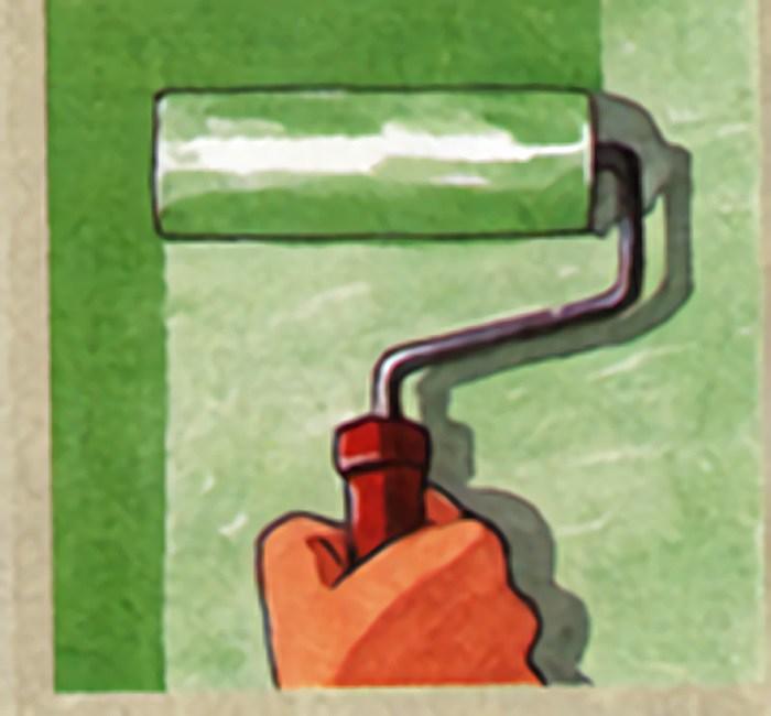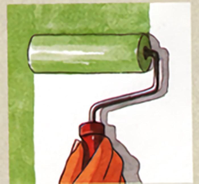 Para la segunda capa deberá preparar una nueva mezcla, ésta más densa: 90% de pintura y 10% de solvente. Aplique con ella la segunda capa, igualmente de arriba abajo, y finalmente, remate los contornos y detalles con un rodillo más pequeño.