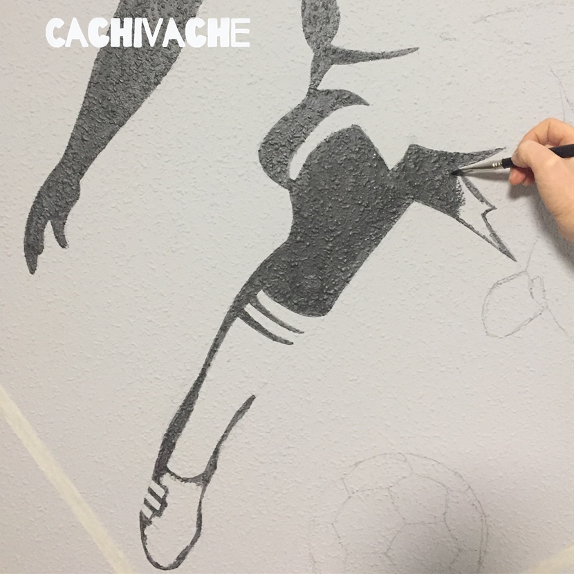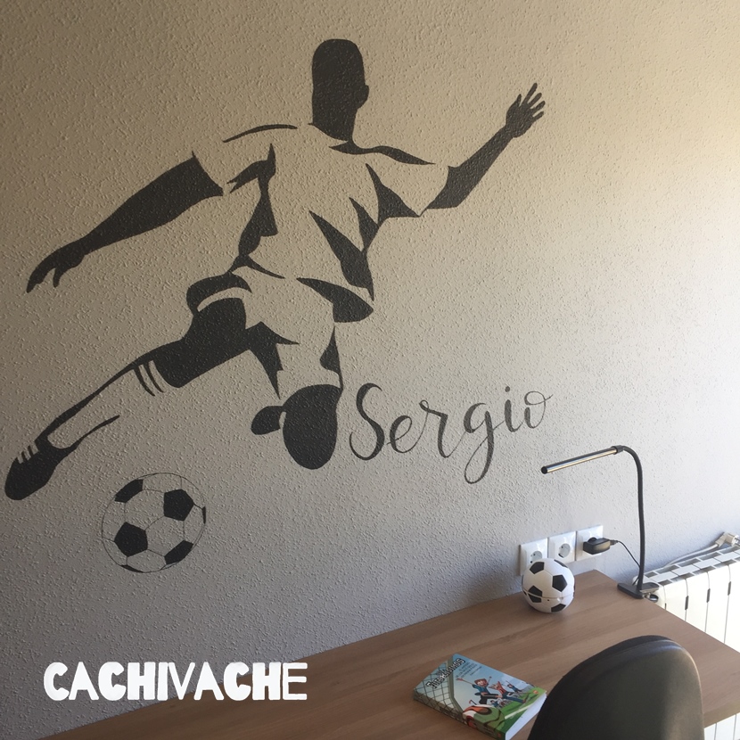 Lo primero que tienes que hacer es elegir el tema y el lugar donde se va a pintar: en mi caso, el tema elegido es el fútbol, y el diseño es la silueta de un jugador de fútbol.