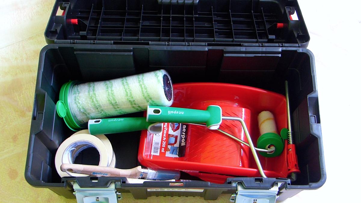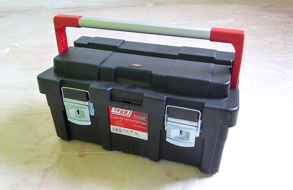 Mientras se seca la imprimación del tabique voy a darle también al techo de pladur que tengo en otra habitación. Para mover las herramientas de un lugar a otro lo hago con la caja de herramientas 550E de Tayg. No solo tiene una apariencia bastante robusta sino que resiste hasta 120kg sobre ella.