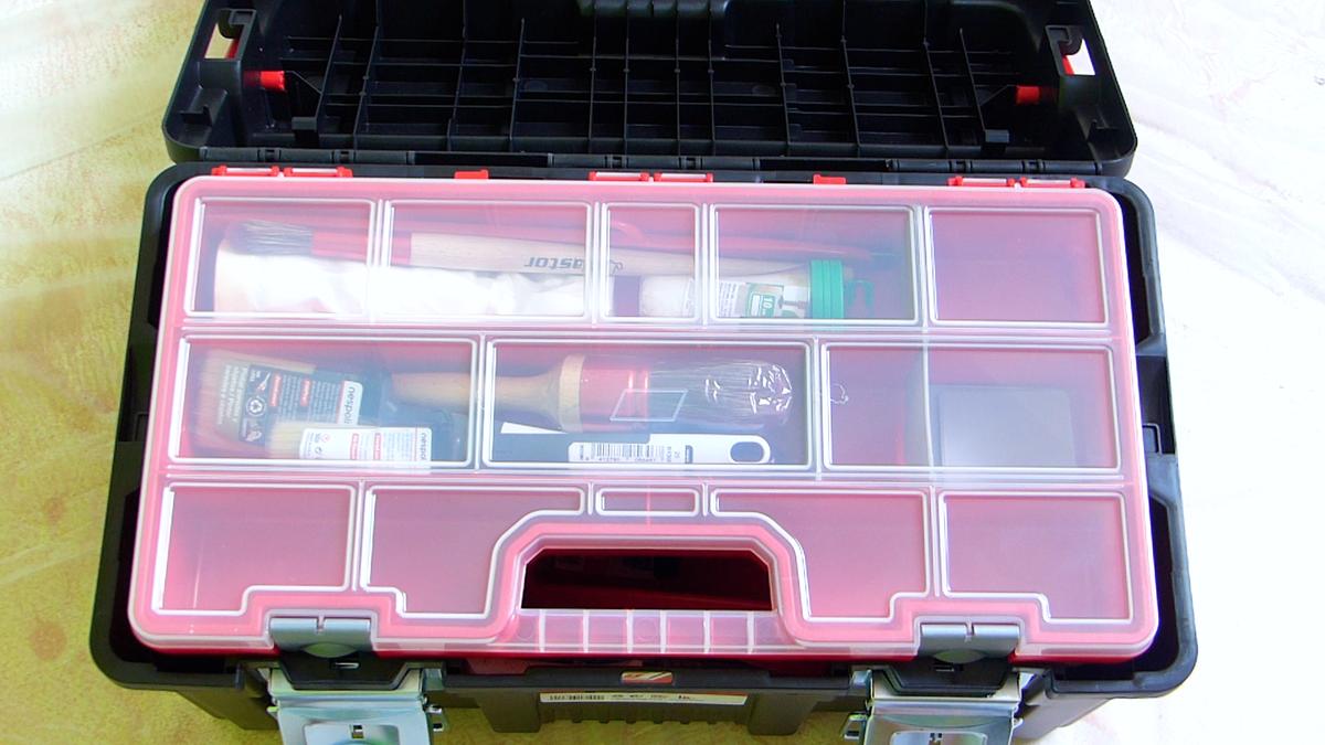 Es muy funcional ya que puedo llevar todas mis pequeñas herramientas en el organizador que tiene en su parte superior y el resto de ellas en la zona inferior.