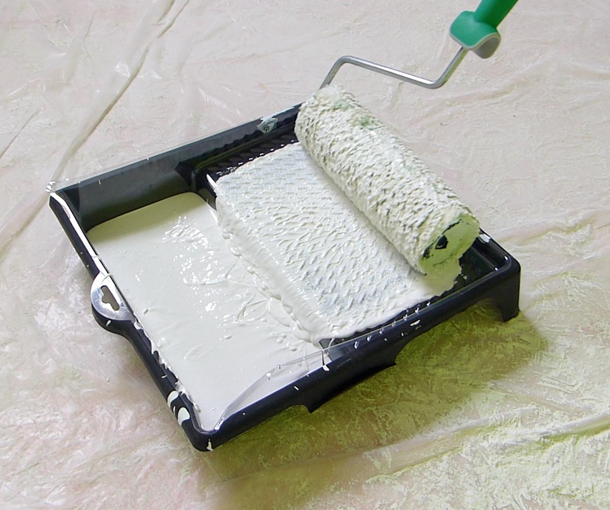 Ahora que he terminado, vierto en una cubeta la pintura y ya puedo impregnar el rodillo para comenzar a pintar. Le he añadido un accesorio de plástico