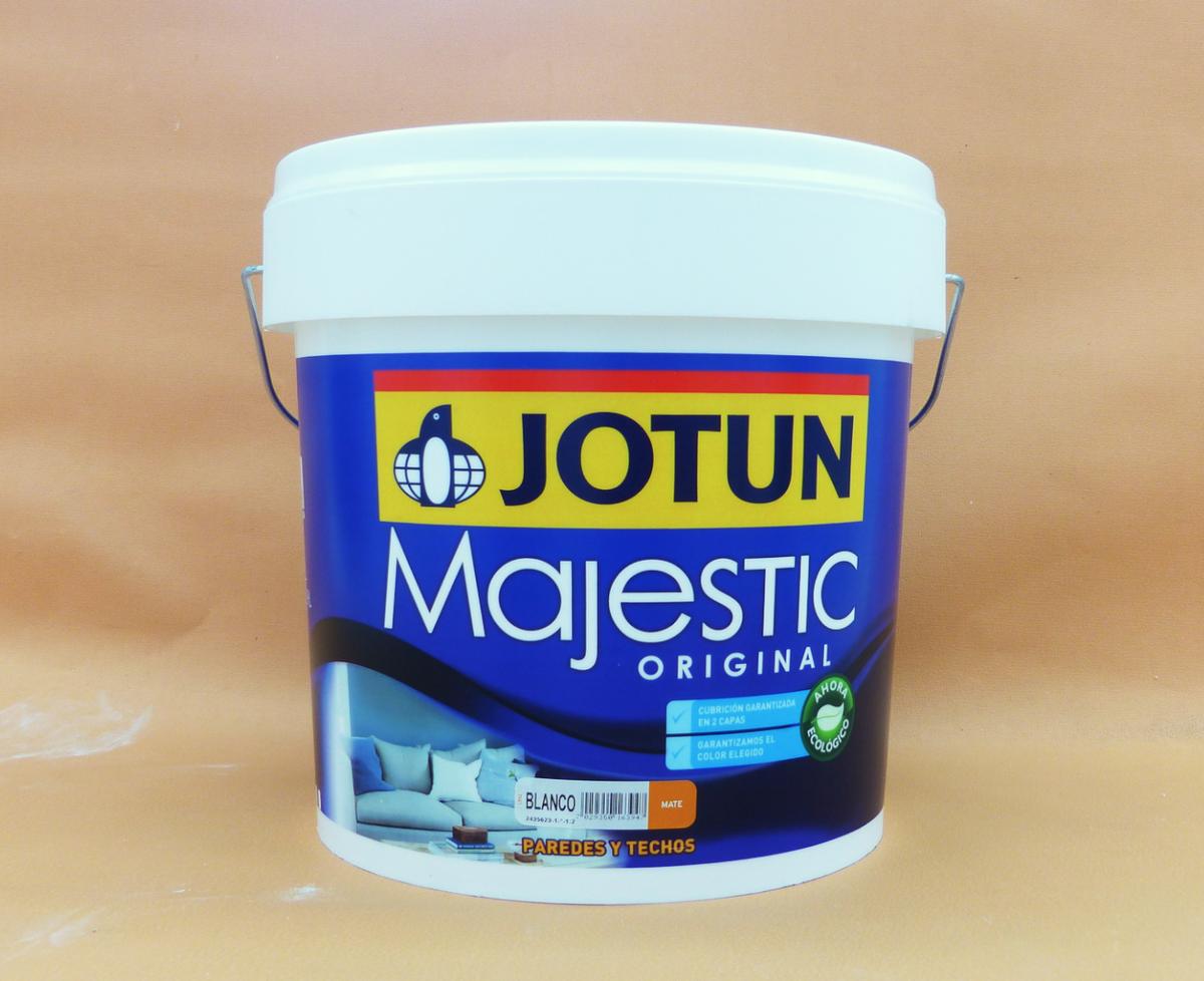 Pasadas las 24h de secado de la imprimación vamos a pintar el tabique. Debemos escoger una buena pintura, yo voy a utilizar la Majestic Original de Jotun. La he elegido porque no hay que diluirla, no salpica al verterla y porque tiene certificado ecológico. Abro el bote con la ayuda del agitador y con él remuevo también la pintura hasta que quede homogénea.