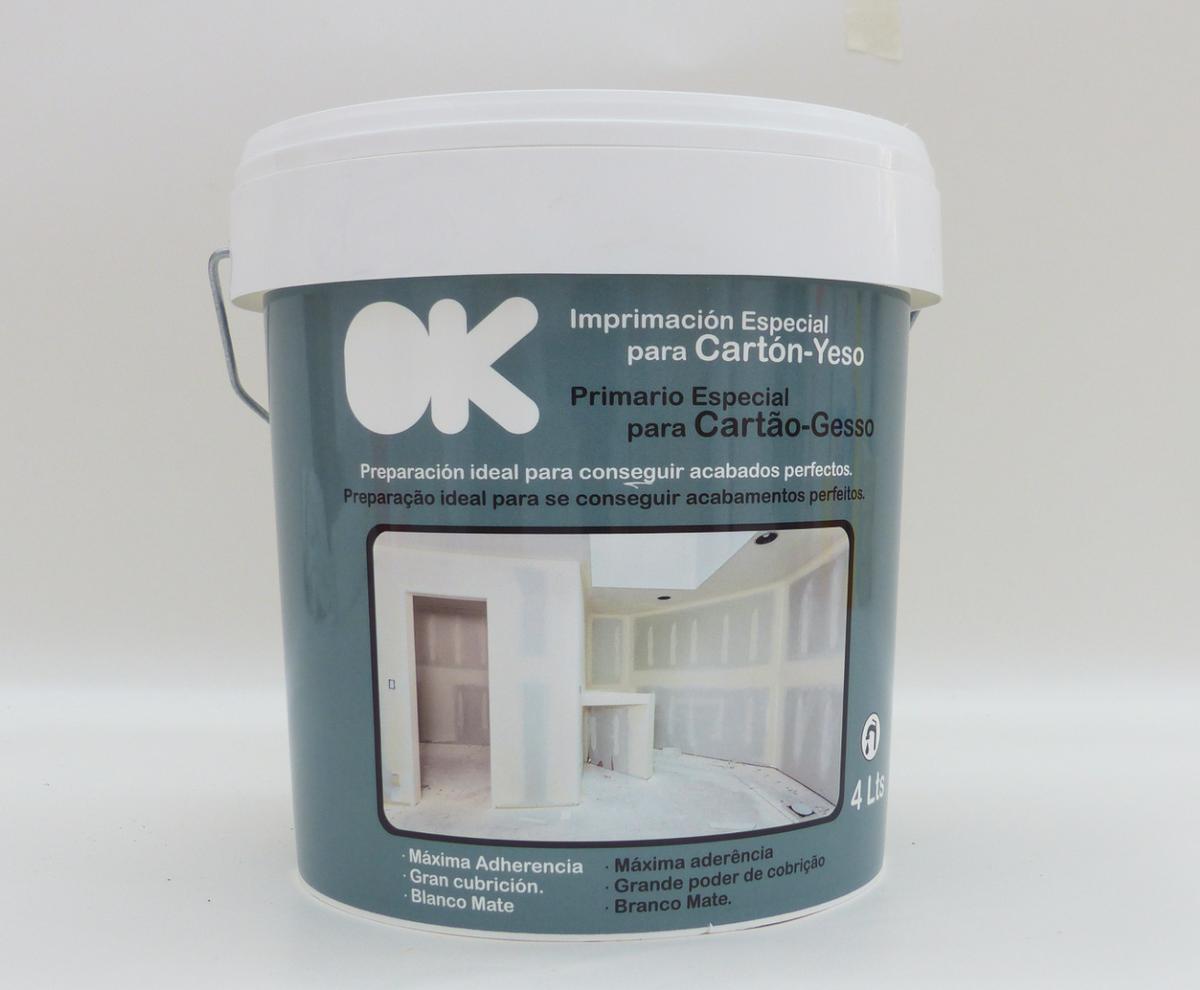 El primer paso es aplicarle una imprimación para que agarre mejor la pintura posteriormente. Lógicamente vamos a utilizar una imprimación específica para pladur. La vamos a aplicar con la cubeta de mano, el rodillo especial para pintar esquinas y necesitaremos el agitador para remover toda la imprimación y dejarla uniforme antes de aplicarla.