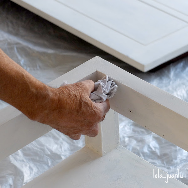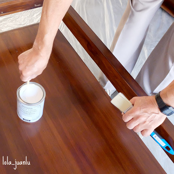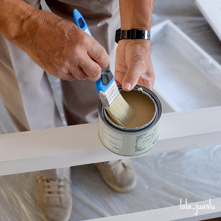 Y una vez que la mesa y la brocha están secas, terminamos aplicando una capa de cera para proteger la pintura. Terminada esta parte, volvemos a lavar bien la brocha. Dejamos secar.