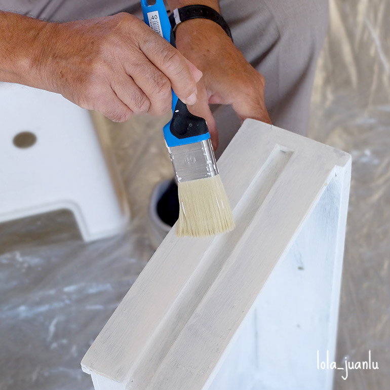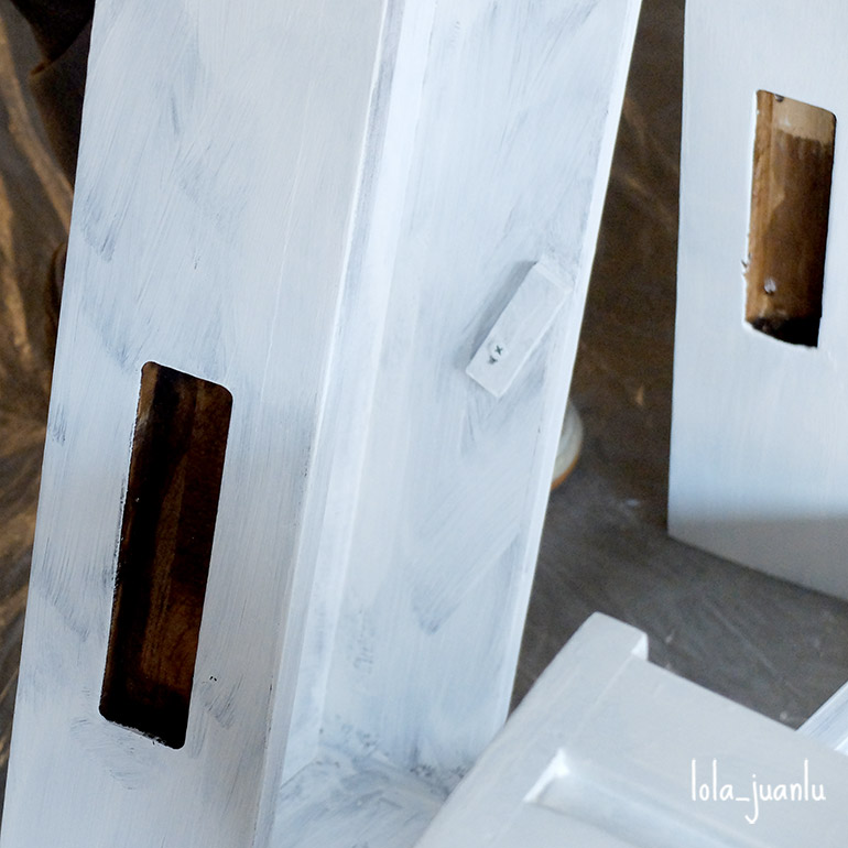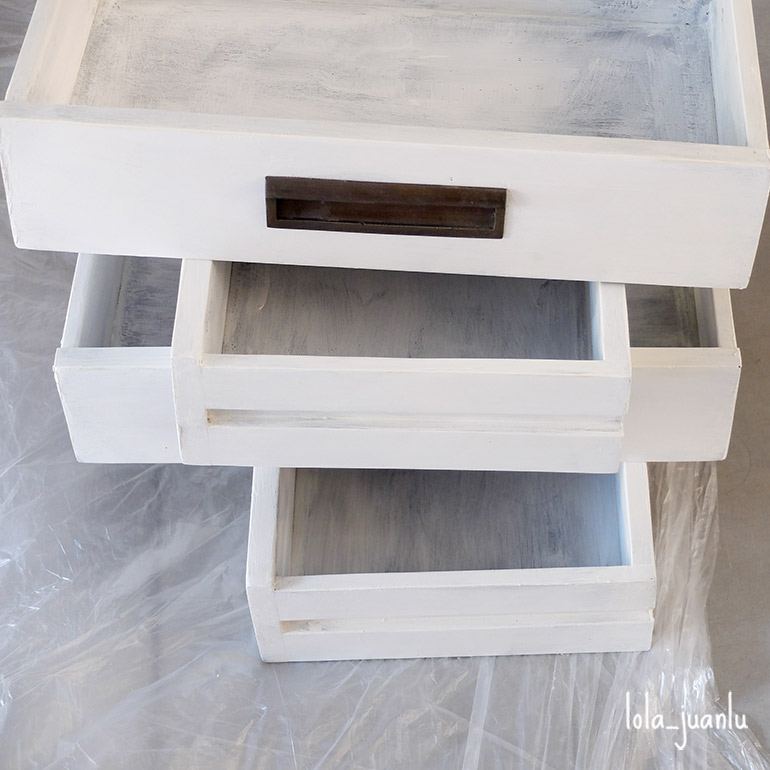 Se me ocurrió que quedaría mejor que hubiera algunos contrastes, como por ejemplo, que el interior de los cajones quedaran más oscuros que el exterior, por lo que en el interior no aplicamos la segunda capa de pintura, creando un efecto de profundidad.