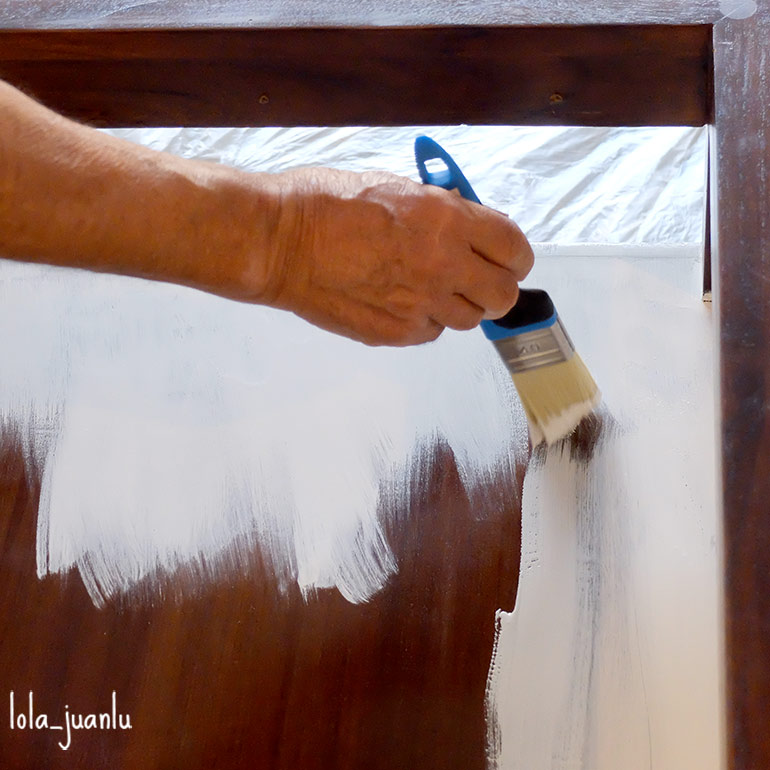 Así quedaba bien, pero yo la quería aún más blanca por lo que, una vez seca tanto la mesa como la brocha, le aplicamos una segunda capa de pintura.