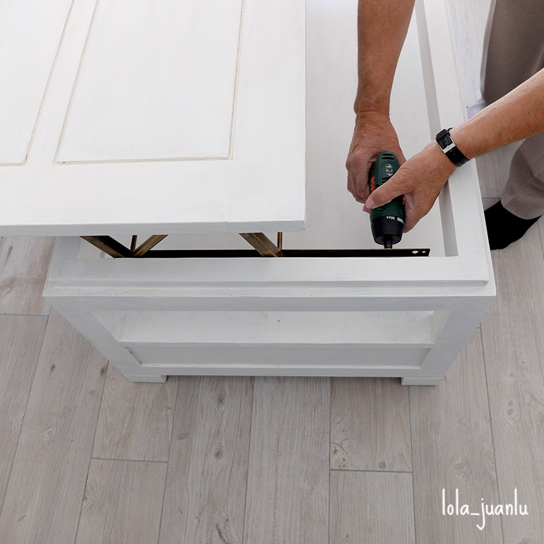 También pintamos los cajones, tanto por dentro como por fuera. Y por último, el tablero.