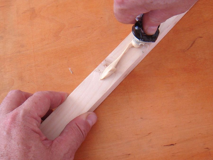 Fijaremos la baranda con listones a uno y otro lado. El de la pared va con dos tirafondos normales, el del barrote de metal lo pondremos con adhesivo de montaje, que permite una fijación rápida y muy sólida. Este adhesivo sólo requiere que uno de los elementos a unir sea poroso; como vamos a fijar madera, no hay problema.